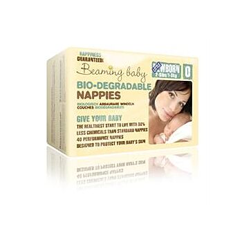 The World's First Bio-Degradable Disposable Nappy: Give Your Baby The HEALTHIEST Start to Life; Protect Your Baby from Harsh Chemicals in Standard Nappies; Extreme Comfort with Stretchy Back and Side Panels; Get a Full Night's Sleep! with the Totally GM Free Absorbent Core. HOW ARE BEAMING BABY NAPPIES HEALTHIER FOR MY BABY? Your baby will probaby wear a nappy most of the day and night, with only a few breaks for bathing, changing and the occasional 'free range' moment! Not only have we RADICALLY reduced the chemicals in these nappies, but we have also introduced a REVOLUTIONARY Naturally Breathable Layer against your baby's skin. Combined with a TOTALLY GM FREE Absorbent Core to keep the wetness away from your baby's bottom for up to 12 hours. GENTLY infused with Chamomile to PROTECT and SOOTH sensitive skin. Giving your baby the perfect solution for NATURALLY HEALTHY skin. HOW WILL MY BABY BE HAPPIER With Beaming Baby Size 0 Nappies? Your beautiful baby will want to WRIGGLE, move and SNOOZE with ease and COMFORT so we have developed SOFT stretchy panels on both sides and at the back to accommodate every position for both day and night. And of course, being a healthier little one, due to less chemical exposure, your baby is certain to be HAPPIER too!