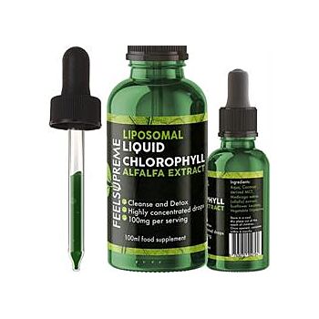 100ml | 50 Servings | Alfalfa Extract Introducing Liposomal Liquid Chlorophyll Drops Our Liquid Chlorophyll is produced using liposomal technology. This is the process of breaking down the particle size and binding it to a lipid to enhance bioavailability. This is the only liposomal liquid chlorophyll in the world! Chlorophyll, the green pigment found in plants, is nature's gift to revitalize and cleanse your body. Our liposomal formulation ensures optimal absorption, allowing you to harness the full potential of this natural elixir. Experience the Antioxidant Power Chlorophyll is known to decrease oxidative stress, which is implicated in various pathologies. Its antioxidant properties are attributed to its ability to scavenge reactive oxygen species, protecting your cells from damage. Detoxify and Purify Chlorophyll is not just a pigment; it's a pathway to detoxification. It has been studied for its ability to bind with toxic heavy metals, aiding in their removal from the body. Our Liposomal Liquid Chlorophyll Drops provide a natural way to cleanse your body and promote overall health.