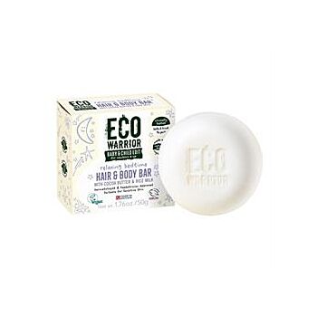 Relaxing bedtime hair & body bar with cocoa butter, coconut oil & rice milk to help nourish skin and hair before bedtime. With an allergen free lavender blossom fragrance. The Eco Warrior Baby & Child Edit ticks every box regarding accessibility, affordability, and sustainability: cost-effective, eco-friendly, multi-functional 2-in-1 shampoo and body wash hybrids that are better for your baby, better for you, better for bath time, and better for the planet. Cocoa Butter- Provides superior soothing properties and helps skin retain its natural moisture. Coconut Oil- Helps the appearance of mild skin conditions like dry skin, eczema, or psoriasis. It also has anti-inflammatory properties and can help with common baby skin issues. Rice Milk- contains soothing, anti-inflammatory properties, while moisturising skin. Perfect for use on: face/hair/body of newborns & up. Use: Bath, shower or sink. ? Totally free from SLS, sulphates, alcohol, parabens, sorbates & silicones ? Dermatologist & paediatrician approved ? Clinically tested & proven to be suitable for sensitive skin ? Plant based and 100% Vegan ? Soap free & pH balanced formula that is safe & kind to skin ? Leaping Bunny Cruelty Free ? Plastic Free, Eco Friendly and Biodegradable (soap and packaging) ? Ergonomically designed to run over baby's skin and a great shape for little hands too!