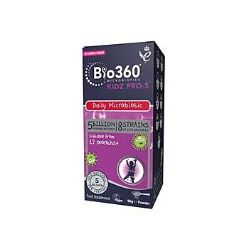 Natures Aid Kidz Pro-5 powder contains a guaranteed 5 billion live organisms, using 8 extensively researched strains of bacteria, including 5 strains of Lactobacillus and Bifidobacterium Infantis. Kidz Pro-5 powder is sugar free and contains no artificial flavours or colours.