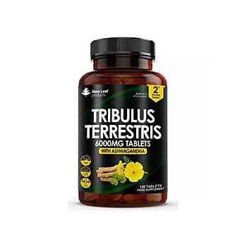 EXPLORE THE ESSENCE OF NEW LEAF'S TRIBULUS TERRESTRIS TABLETS New Leaf's Tribulus Terrestris Tablets are a robust blend of ancient herbs, offering a two-month bounty with 120 tablets. Each serving is a powerhouse of 6000mg Tribulus Terrestris and 1000mg Ashwagandha. Tribulus Terrestris is renowned for its dense content of saponins, specifically 95% Saponins, enhancing the tablet's core composition. Ashwagandha complements this blend with its own rich history in traditional wellness practices. A HARMONIOUS BLEND OF TRADITIONAL INGREDIENTS The pairing of Tribulus with Ashwagandha represents a thoughtful fusion of ingredients that have been valued for centuries in various herbal traditions. This combination aims to harness the vitality-promoting properties of Tribulus Terrestris and the adaptogenic benefits of Ashwagandha. Together, they create a synergistic effect that underscores our dedication to offering products that resonate with the wisdom of traditional herbal practices. SAFETY INFORMATION Do not exceed stated dose. If you are pregnant, breastfeeding, taking prescription medication or under medical supervision it is advisable to consult a GP prior to taking any supplements. This product is not intended to treat, cure or prevent any disease. Discontinue use and consult a GP if adverse reactions occur. Not suitable for persons under the age of 18. Keep out of reach of children at all times. Do not use if seal is broken. Food supplements should NOT be used as a substitute for a balanced diet and healthy lifestyle. This product is not intended to treat, cure or prevent any disease. INGREDIENTS Bulking Agent (Microcrystalline Cellulose), Tribulus Terrestris 20:1 Extract (95% Saponins), Ashwagandha Root 20:1 Extract (3% Withanolides), Anti-Caking Agent (Magnesium Stearate) DIRECTIONS Take two tablets per day with food, or as directed by a healthcare professional.
