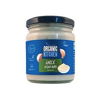 Organic Kitchen Garlic Vegan Mayo is the perfect vegan spread for sandwiches and compliments any filling. Packed with punchy garlic, 100% egg free and gluten free, our mayo is also delicious as a dip. For something less garlicy, try our plain vegan mayo (ORK42). For nutritional information and ingredients, click Further Information.