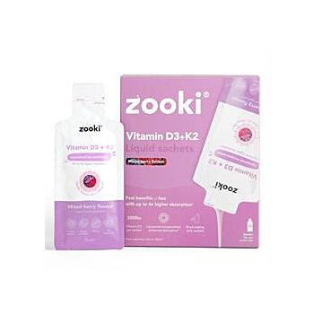 Zooki's mission is to bring you the world's most effective and enjoyable health & beauty supplements. #1 trend on TikTok UK. - 3000iu of liposomal Vitamin D3 and 100ug of liposomal Vitamin K2 per sachet. - With Zooki liposomal encapsulation technology, clinically proven to be up to 4x better absorbed vs. conventional capsules. - Available in a delicious mixed berry flavour. Best enjoyed straight from the sachet. - Great tasting, advanced support for your immune system, muscle function, and strong bones and teeth.